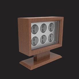 Das patentierte Clip-Befestigungssystem an der Rückseite des Cylinder sorgt für die optimierte Präsentation auf einer Vitrine.